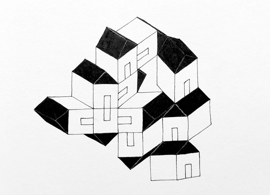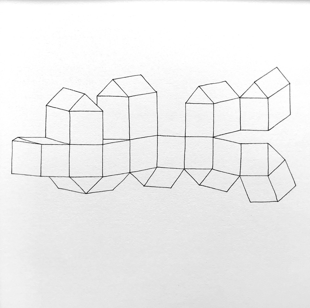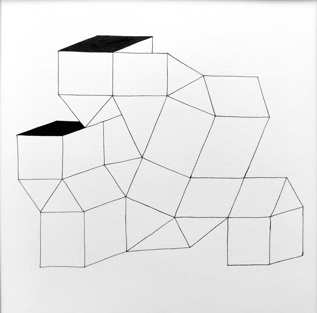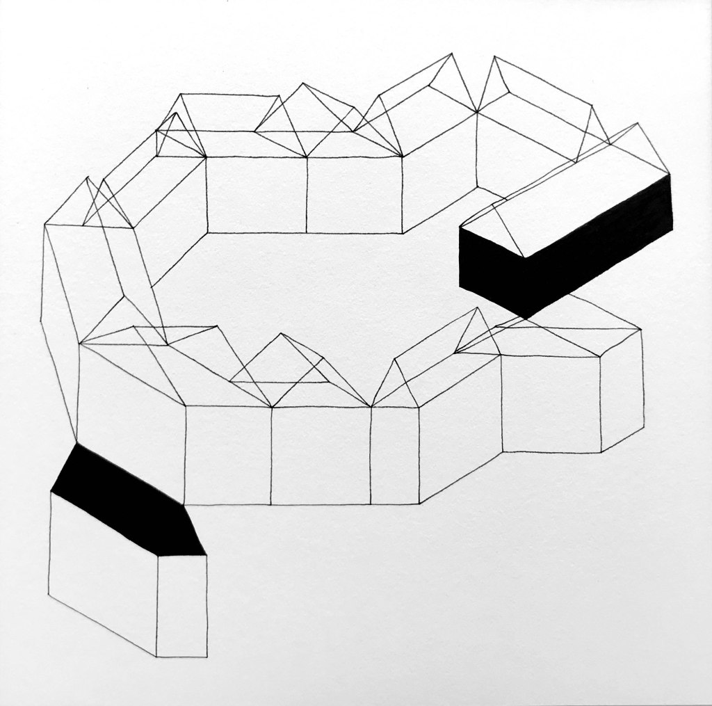 Ink on paper, 7 drawings, each 30×30 cm.
