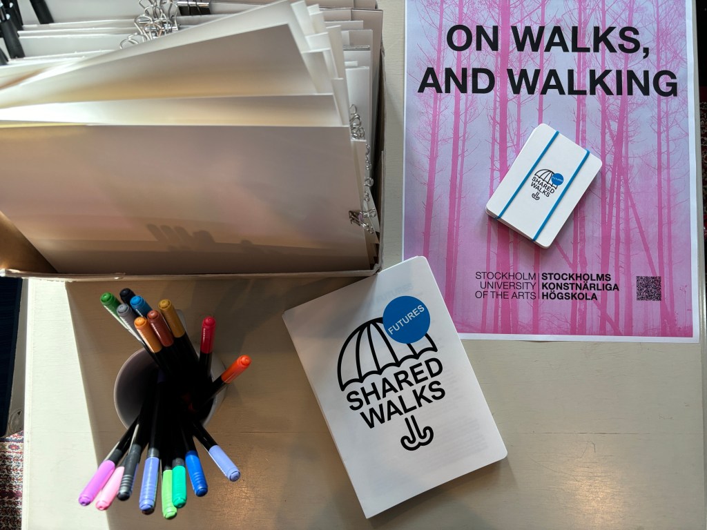 The emotional and physical stress in a world defined by permanent change and multiple crises can be overwhelming and debilitating. To deal with these feelings, we tend to develop connections, share with others and find calm in dialogue. We are surrounded by reminders of apocalyptic images of the future, yet we see the power and agency in these connections to imagine, narrate and act upon the changes needed for a possible, desirable, open and pluralist future. Walking with others has the potential to open space for reflection and instigate a better understanding of our environment, of others and of ourselves. Shared Walks opens a playful walking space that explores the environment, initiates social interactions in public space and creates possibilities for the appropriation of space and participation. Different walking prompts propose changes in the way we normally walk. Using a card set with different types of walks, participants walk together in pairs, collecting and sharing observations, impressions, thoughts, feelings, memories, stories, associations etc., mapping their surroundings from different perspectives.